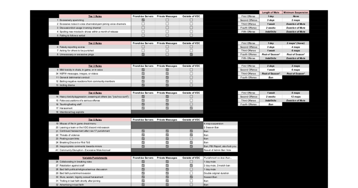 2,Excessive noise in voice channels/spam joining voice channels,Third Offense,1 week,Duration of Mute